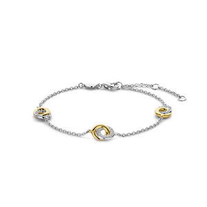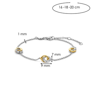 This TI SENTO gold-plated infinity bracelet 2925ZY is a refined expression of timeless beauty and modern sophistication. This bracelet features delicately crafted infinity symbols along its chain, where a yellow gold-plated circle connects with a dazzling pave circle of cubic zirconia. Crafted from premium 925 sterling silver, the bracelet is plated with platinum in order to protect it from daily wear and keep it luminous. Designed to embody the perfect balance of elegance and luxury, this bracelet seamlessly blends the warmth of gold with the dazzling allure of cubic zirconia. The refined infinity tokens symbolise connection and boundless love. Embrace the refined charm of this bracelet, where each intricate detail contributes to a piece that effortlessly transitions from casual sophistication to evening elegance. Like all our jewellery, this bracelet is nickel-free and hypoallergenic, ensuring not just style, but also comfort and quality.