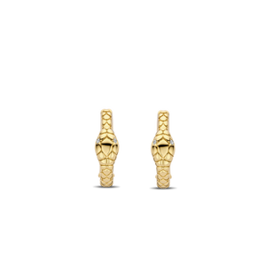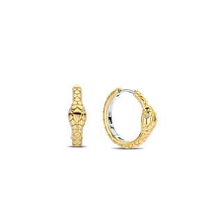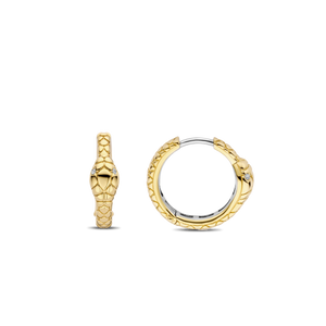 Indulge in vintage-inspired opulence with these TI SENTO gold-plated silver Snake Hoops 7993SY. Crafted from 925 sterling silver and plated in lustrous yellow gold, these statement pieces feature int... read more