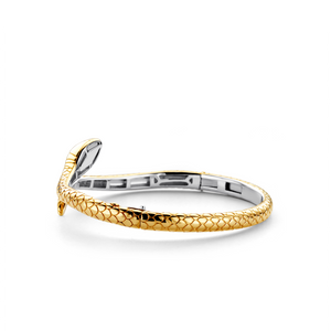 This TI SENTO gold-plated snake bracelet  2903SY will give a sophisticated edge to your look as she snakes subtly around your wrist. She'll capture everyone's attention. Her safety-lock keeps her with you all the time.