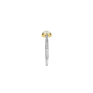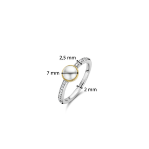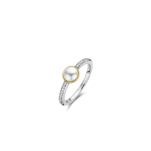 This TI SENTO gold-plated pearl ring 12308YP flaunts a lustrous pearl handset in a yellow gold-plated setting. A pavé of dazzling white cubic zirconia stones decorates the band adding a touch of glamour to the design. The ring is entirely crafted from premium 925 sterling silver and plated with yellow gold for an opulent and warm touch. This opulent piece is designed to dazzle and elevate your style. Timeless pearls add grace to every look. When it comes to pearls, you can never overdo it. Decorate your hands with this graceful beauty, stack and combine it with the unexpected. All our rings are nickel-free and hypoallergenic.