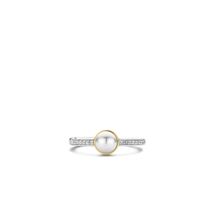 This TI SENTO gold-plated pearl ring 12308YP flaunts a lustrous pearl handset in a yellow gold-plated setting. A pavé of dazzling white cubic zirconia stones decorates the band adding a touch of glam... read more