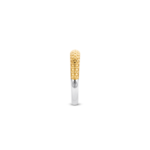 The yellow-gold plating of this TI SENTO silver ring 12164SY is subtle and elegant. Her dazzling snake-skin pattern gives her that touch of edge. She's a real catch.