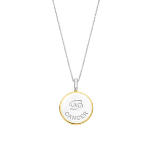 This TI SENTO zodiac silver pendant 6826CA showcases the sensitive Cancer star sign (21/6 - 22/7). Symbol of emotional intelligence, empathy, and intuition, this pendant is a perfect token for the nurturing Cancerians. Crafted from premium 925 sterling silver, the Cancer constellation is gold-plated and features tiny cubic zirconia stones handset on a dreamy mother of pearl coin. A pavé of luminous cubic zirconia stones decorates the clip ring that allows you to clip the pendant on any necklace. This pendant is elegantly suspended from a dainty silver chain. Let this pendant inspire you to embrace your emotions, express your compassion, and nurture meaningful connections with those around you. Embrace the power of your Cancer energy. All of our pendants are nickel-free and hypoallergenic. Our Zodiac jewellery is packaged with love in a luxurious dark blue satin pouch and encased in a captivating dark blue and golden jewellery box, making every piece a truly enchanting gift.