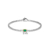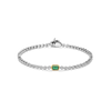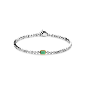 Discover a charming blend of elegance and modernity with this TI SENTO Silver Tennis Bracelet 23043EM. Crafted from 925 sterling silver and plated with platinum for lasting brilliance, this bracelet features a dazzling row of white cubic zirconia stones. A striking emerald green baguette-cut cubic zirconia, set in a luxurious yellow gold-plated mount, takes centre stage, adding a pop of vibrant colour. The contrast between the cool, clear stones and the vibrant green, warmed by the gold setting, creates a mesmerising effect. This bracelet is a perfect fusion of classic and contemporary design, offering a touch of luxury to any outfit. Elevate your everyday look with this sophisticated accessory. Wear it alone for a bold statement or stack it with other TI SENTO bracelets for a personalised, modern look. Crafted with care for sensitive skin, this nickel-free and hypoallergenic bracelet ensures lasting comfort and quality.