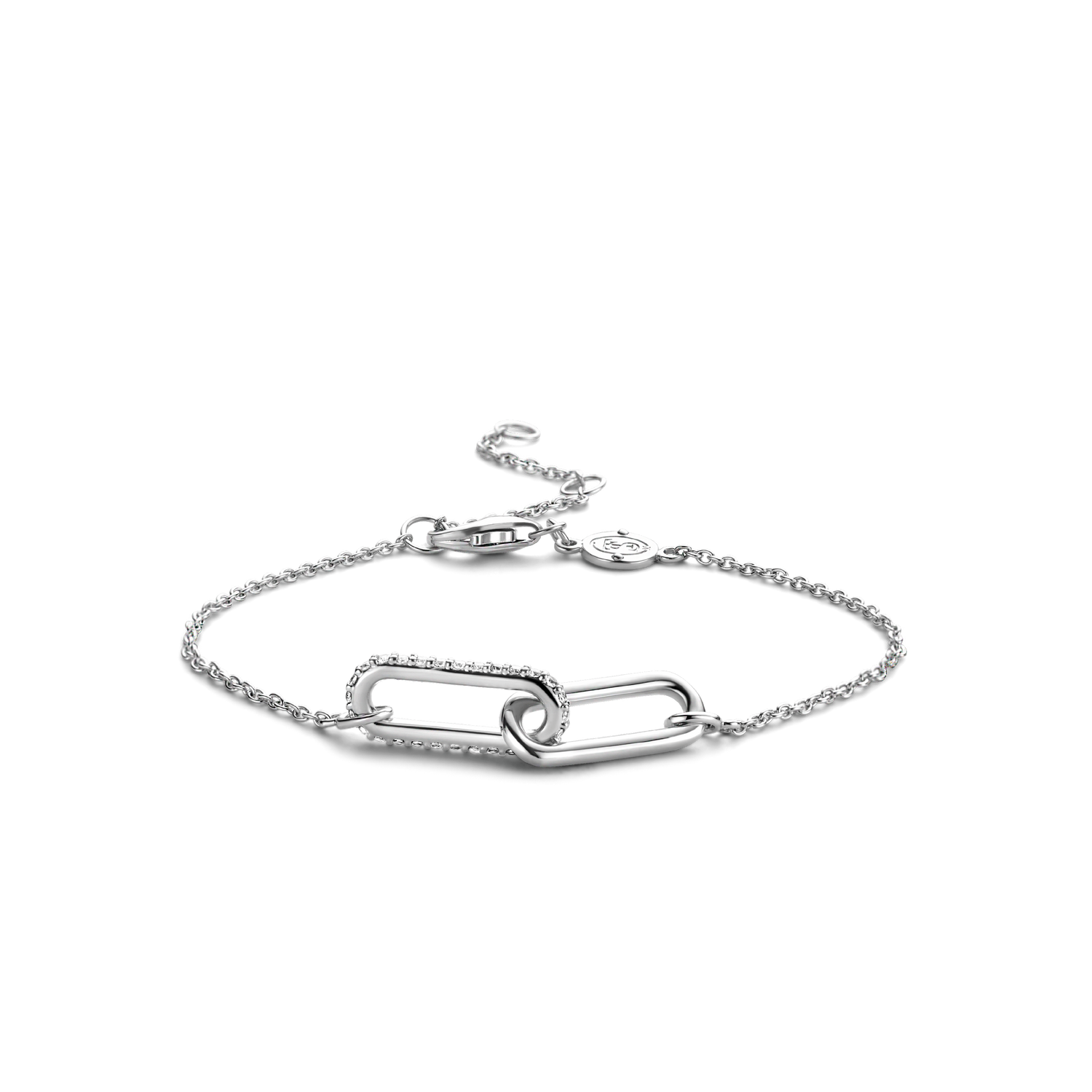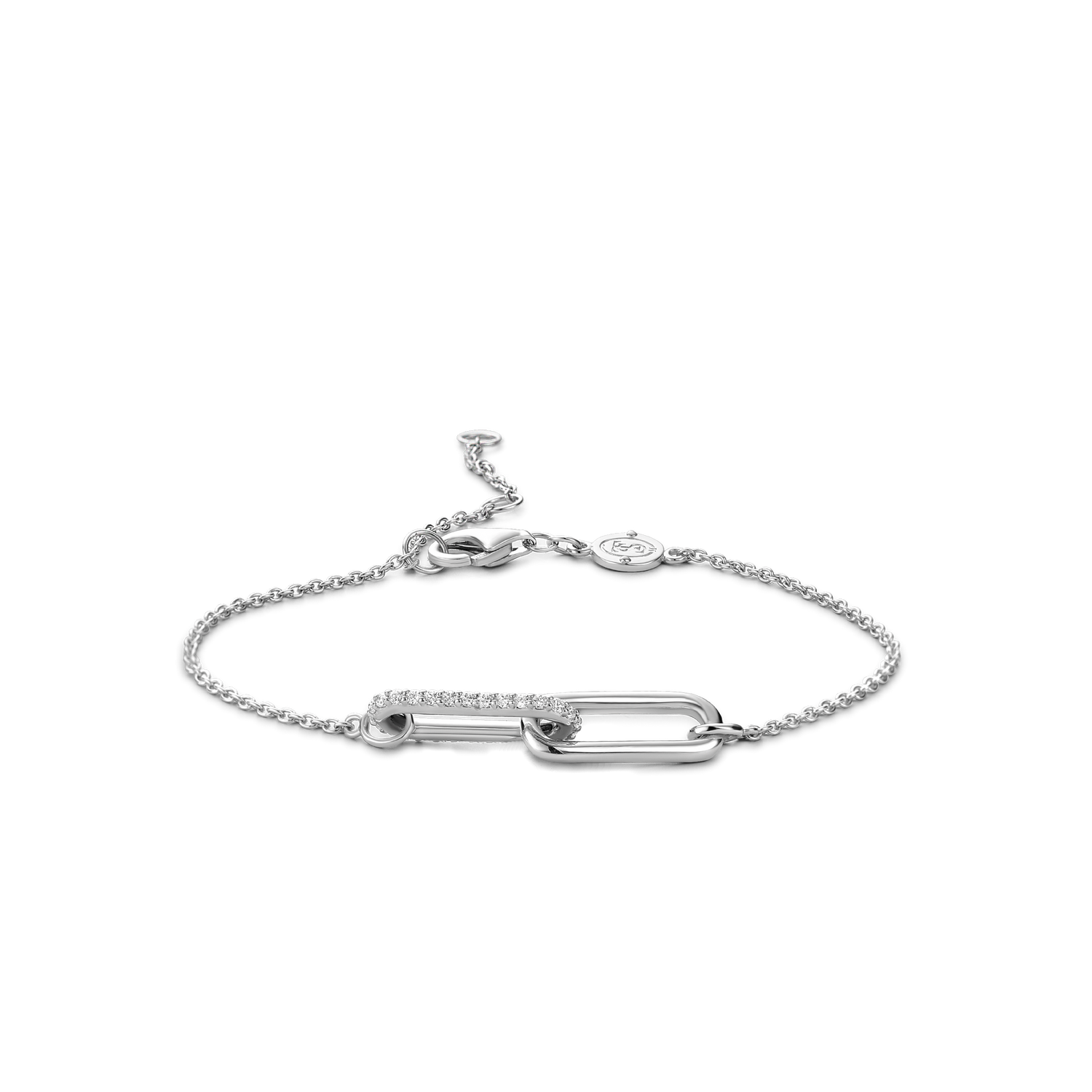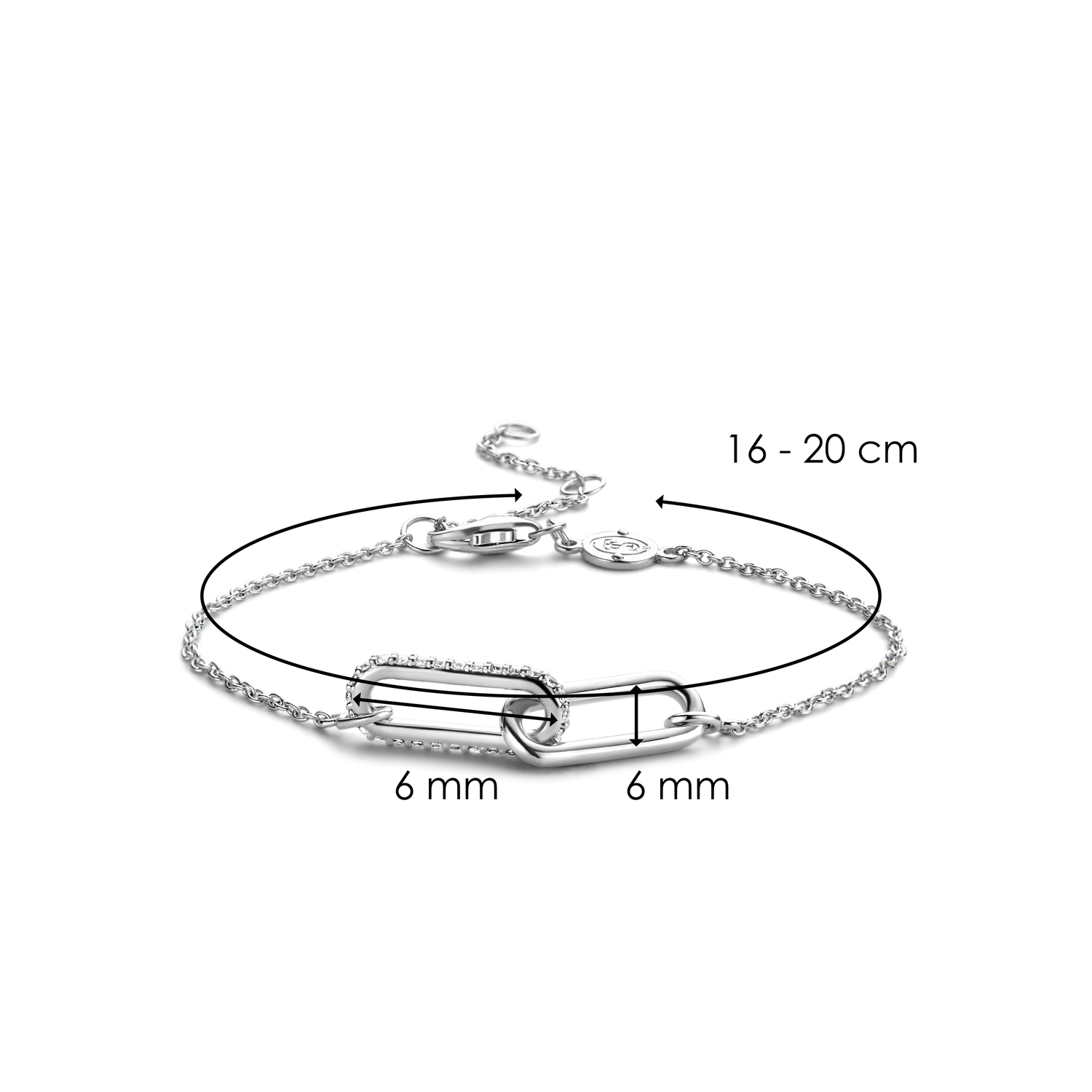 This TI SENTO silver bracelet 2960ZI has two cute, connected silver links. A pave of shimmering cubic zirconia stones is set by hand on one of the links. The bracelet is made of 925 sterling silver and coated with a thick layer of rhodium to protect it and keep it luminous. The bracelet is adjustable to make sure it'll fit just right. Its extra-safe lock is designed to keep this piece with you all the time. Lovely detail is that the bracelet can also be worn as a necklace! You can find the necklace sizes here: S: 46 cm, M: 52 cm, L: 58 cm.