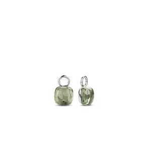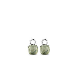 These TI SENTO silver ear charms 9215GG have deep green, fantasy-cut cushion stones. They catch glimpses of light wherever they turn.