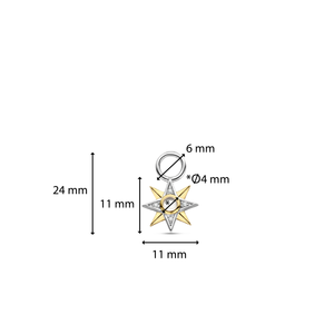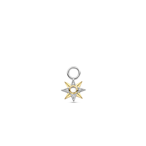 This TI SENTO single silver ear charm 9266MW_H flaunts a star shape with a mother of pearl centrepiece. This star ear charm alternates yellow gold-plating and a pavé of cubic zirconia stones. Crafted from premium 925 sterling silver, it is then coated with a platinum layer to protect it from daily wear and keep it luminous. This piece is a reminder to star gaze and feel enlightened by the stars. Hang it to your favourite hoops and mingle it with others to create your very own Ear Party. This single ear charm is completely nickel-free and hypoallergenic.