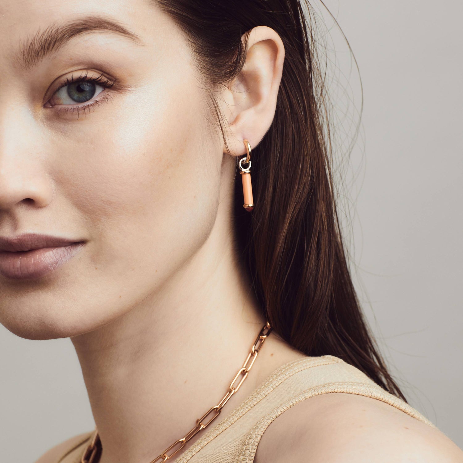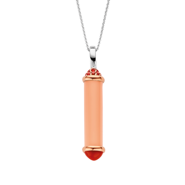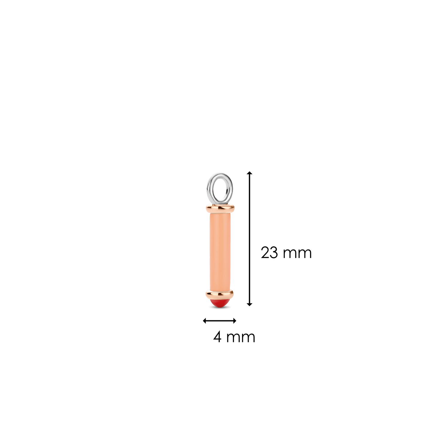 This TI SENTO rose gold-plated silver ear charm 9234CP_H features a pink tube-shaped stone. A red stone decorates the lower part and is embraced by a rose gold-plated setting. This keepsake is a reminder to seek sunshine from within. Hang it to hoops, mingle it with symbols of love, peace, and luck to create your own keepsake composition. The ear charm is made of 925 sterling silver.