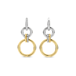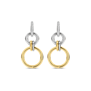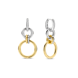 These TI SENTO Gold-Plated Interlinked Hoop Earrings 78018ZY are a bold take on modern elegance, fusing sleek geometry with timeless sophistication. Crafted from premium 925 sterling silver, these earrings feature a cascade of interlocking circles, blending polished yellow gold-plated links with luminous silver elements. A pavé-set cubic zirconia hoop anchors the design, adding a refined sparkle that catches the light with every move. The dynamic interplay of textures and tones makes these earrings effortlessly versatile—whether styled with a tailored blazer or a breezy summer dress, they add a touch of effortless chic. Nickel-free and hypoallergenic, they ensure luxurious comfort with every wear. Let these interlocking hoops be your statement of strength, fluidity, and endless style possibilities.