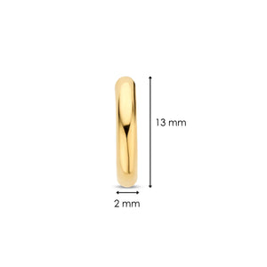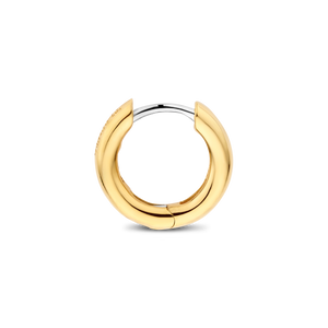 This TI SENTO gold-plated small single hoop 7812YS_H is designed to adorn your ear with grace and sophistication. The hoop is crafted from premium 925 sterling silver and plated with gold for a radiant touch. The hoop boasts a 14mm diameter. Its petite size allows for versatile styling options - wear it solo for a minimalist statement or combine it with other single earrings for an asymmetrical style that's all your own. Embrace the simplicity and elegance of our solo gold-plated small hoop and let it become a cherished staple in your jewellery collection. Like all our jewellery, this huggie earring is nickel-free and hypoallergenic, ensuring not just style, but also comfort and quality.