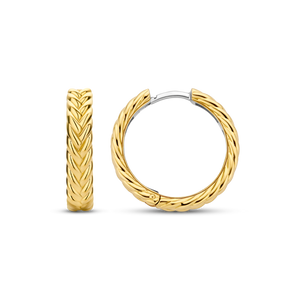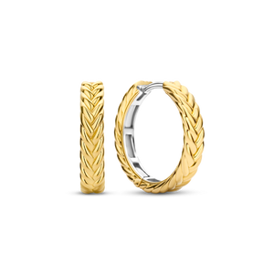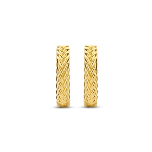 Erg mooie oorringen , verguld en t gevlochten materiaal. Is ook eurig op tijd bezorgd.
