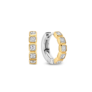 These TI SENTO gold-plated hoop earrings 7965ZY flaunt a stream of square cubic zirconia stones handset within a radiant yellow gold-plated setting. A striking blend of luxury and modern classic design. Crafted from premium 925 sterling silver and plated with radiant yellow gold, the luxurious arrangement of sparkling cubic zirconia stones adds an irresistible allure to these hoops, creating a captivating play of light and sophistication. Their timeless design ensures they seamlessly transition from formal occasions to everyday glam. Elevate your style with our dazzling hoop earrings, where the fusion of yellow gold-plating and cubic zirconia stones culminates in a statement piece that embodies pure luxury and enduring elegance. Like all our jewellery, these earrings are nickel-free and hypoallergenic, promising not just style, but also comfort and quality that stands the test of time.