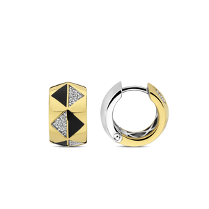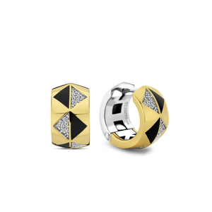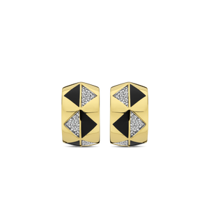 Indulge in timeless elegance with these TI SENTO gold-plated silver Earrings 7987BL. Crafted from 925 sterling silver and plated in radiant yellow gold, these statement pieces features a captivating interplay of geometric shapes. Black stone inlay and tiny shimmering white cubic zirconia stones create an opulent jewel. These earrings are a celebration of modern luxury, reminiscent of the opulence and sophistication of bygone eras. The bold design and the luxurious materials make them truly unforgettable pieces. Add that extra oomph to your everyday look with these timeless beauties. Wear it solo for a bold statement or stack them with other TI SENTO earrings for a curated ensemble that exudes confidence and sophistication. Crafted with care for sensitive skin, this nickel-free and hypoallergenic ring ensures lasting comfort and quality.