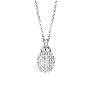 The focal point of this TI SENTO necklace is the teardrop-shaped pendant with hand pavé-set zirconias. Set at regular intervals around the chain are circles of sterling silver with rose gold plating... read more