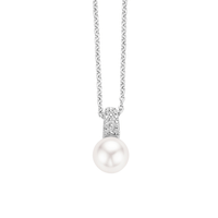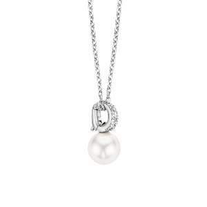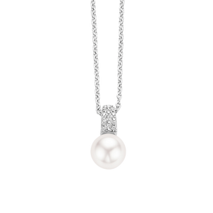 A classic TI SENTO necklace with reference number 3877PW. The necklace has a pendant with pave set Zirconia with underneath a white Swarovski pearl. The necklace is made of Rhodium plated Sterling s... read more