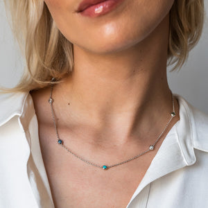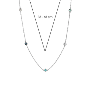 I love the necklace, it's colors and possibility to adjust the size to match a large variety of outfits. I plan to combine it especially with white or dark blue shades. Simple minimalistic shirts and t-shirts will get a fresh and more elegant look with it. The gift packaging was very beautiful and a joy to open.
