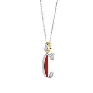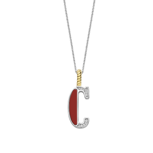 Embrace a vibrant style with this TI SENTO gold-plated silver Letter C Pendant 6840CR_C. This captivating pendant features a red stone inlay forming the letter "C" in striking contrast with a sparkling pavé of white cubic zirconia. Crafted from premium 925 sterling silver, it is then coated with precious platinum to protect it and keep it luminous. Its clip ring is plated in rich yellow gold adding warmth to the 's vibrant energy. The red shimmers with a timeless appeal, adding a pop of vibrant colour to your neckline. The letter C symbolises completion and cycles, representing both beginnings and endings. This pendant is more than just jewellery; it's a playful expression of your individuality. Wear it solo for a bold statement or layer it with other letters or pendants for a trendy, layered look. The pendant comes with a delicate 45cm silver chain. Crafted with care for sensitive skin, this nickel-free and hypoallergenic pendant ensures lasting comfort and quality.