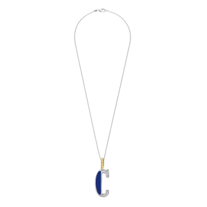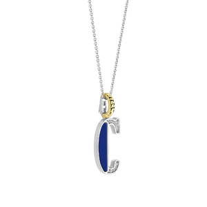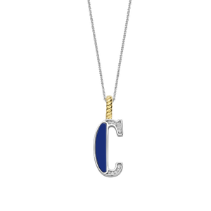 Embrace enchanting allure with this TI SENTO gold-plated silver Letter C Pendant 6840LB_C. This charming pendant showcases a captivating lapis blue stone inlay forming the letter "C" that beautifully contrasts with a sparkling pavé of white cubic zirconia. Crafted from premium 925 sterling silver, it is then coated with precious platinum to protect it and keep it luminous. Its clip ring is plated in rich yellow gold, adding a touch of warmth to the sophisticated allure of lapis blue. The lapis blue stone shimmers with an aura of timeless mystery, like a secret whispered under a starry night, adding a touch of captivating depth to any outfit. The letter C symbolises completion and cycles, representing both beginnings and endings. This pendant is more than just jewellery; it's a token of enchantment. Wear it solo for a minimalist statement or layer it with other letters or pendants for a trendy, layered look. The pendant comes with a delicate 45cm silver chain. Crafted with care for sensitive skin, this nickel-free and hypoallergenic pendant ensures lasting comfort and quality.