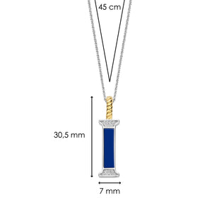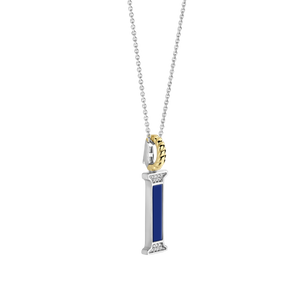 Embrace enchanting allure with this TI SENTO gold-plated silver Letter I Pendant 6840LB_I. This exquisite pendant showcases a captivating lapis blue stone inlay forming the letter "I" in striking contrast with a sparkling pavé of white cubic zirconia. Crafted from premium 925 sterling silver, it is then coated with precious platinum to protect it and keep it luminous. Its clip ring is plated in rich yellow gold, adding a touch of warmth to the sophisticated allure of lapis blue. The lapis blue stone shimmers with an aura of timeless mystery adding a touch of captivating depth to any outfit. The letter I symbolises individuality and independence, representing self-expression and confidence. This pendant is more than just jewellery; it's a symbol of self-expression. Wear it solo for a striking statement or layer it with other letters or pendants for a trendy, layered look. The pendant comes with a delicate 45cm silver chain. Crafted with care for sensitive skin, this nickel-free and hypoallergenic pendant ensures lasting comfort and quality.