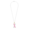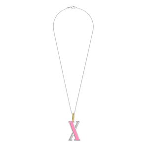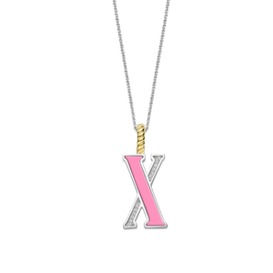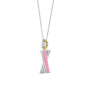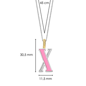 Embrace playful elegance with this TI SENTO gold-plated silver Letter X Pendant 6840PI_X. This pendant features a charming pink stone inlay forming the letter "X", creating a delightful contrast with the sparkling pavé of white cubic zirconia. Crafted from 925 sterling silver, it is then coated with precious platinum to protect it and keep it luminous. Its clip ring is plated in rich yellow gold, adding a touch of warmth to the pink stone's delicate charm. Pink exudes soft femininity and effortless elegance into any outfit. Embrace the timeless appeal of a colour that transcends trends and embodies confidence in its own way. The letter X embodies the thrill of the unexpected, reflecting your daring style and a spirit that embraces individuality. This pendant is more than just jewellery; it's a playful expression of your individuality. Let it be the focal point of your outfit or layer it with other pendants to create a personalised look. The pendant comes with a delicate 45cm silver chain. Crafted with care for sensitive skin, this nickel-free and hypoallergenic pendant ensures lasting comfort and quality.