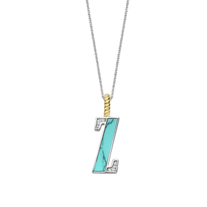 Embrace endless summer with this TI SENTO gold-plated silver Letter Z Pendant 6840TQ_Z. This vibrant pendant features a refreshing turquoise stone inlay forming the letter "Z" in beautiful contrast w... read more