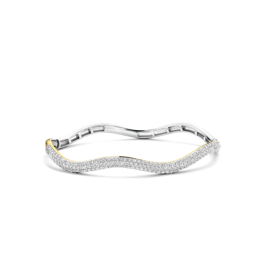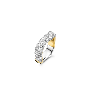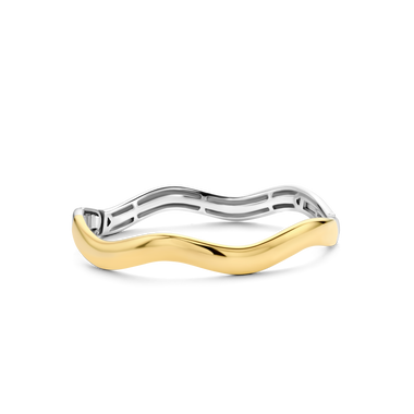 Simpele ring maar door de sprankelende steentjes en de golvende vorm staat hij heel mooi!